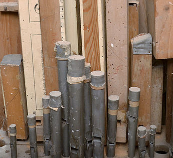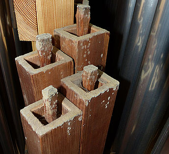 Kleine aber auch gefährliche Feinde der Orgel sind die Holzwürmer. Sie können - wenn sie erst einmal "Fuß gefasst haben" - die Funktionsfähigkeit der Orgel erheblich beeinträchtigen. Hier sind eine Früherkennung und eine punktuelle Holzschutzbehandlung angeraten, um größeren Schaden zu verhindern.